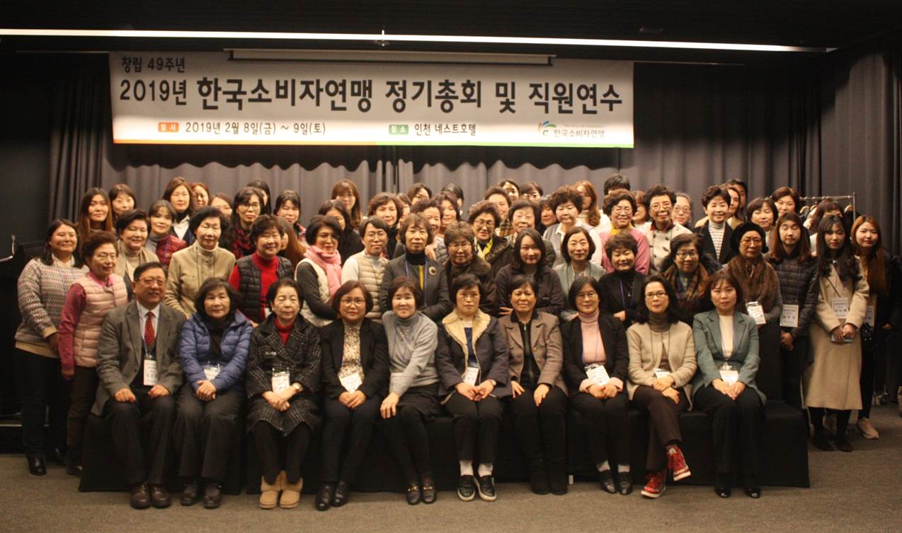한국소비자연맹은 2월 8일~9일 1박 2일 간 인천 네스트호텔에서 2019년 정기총회 및 직원연수를 개최했다. 전국 지부 직원들과 함께 지난 2018년을 돌아보고 앞으로의 2019년 계획을 공유하는 시간을 가졌다. 강정화 회장의 개회선언과 개회사를 시작으로 전국 지부 소개 시간과 본부 및 지부별 지난해 진행했던 사업과 올해 계획을 공유하는 시간을 가졌다.