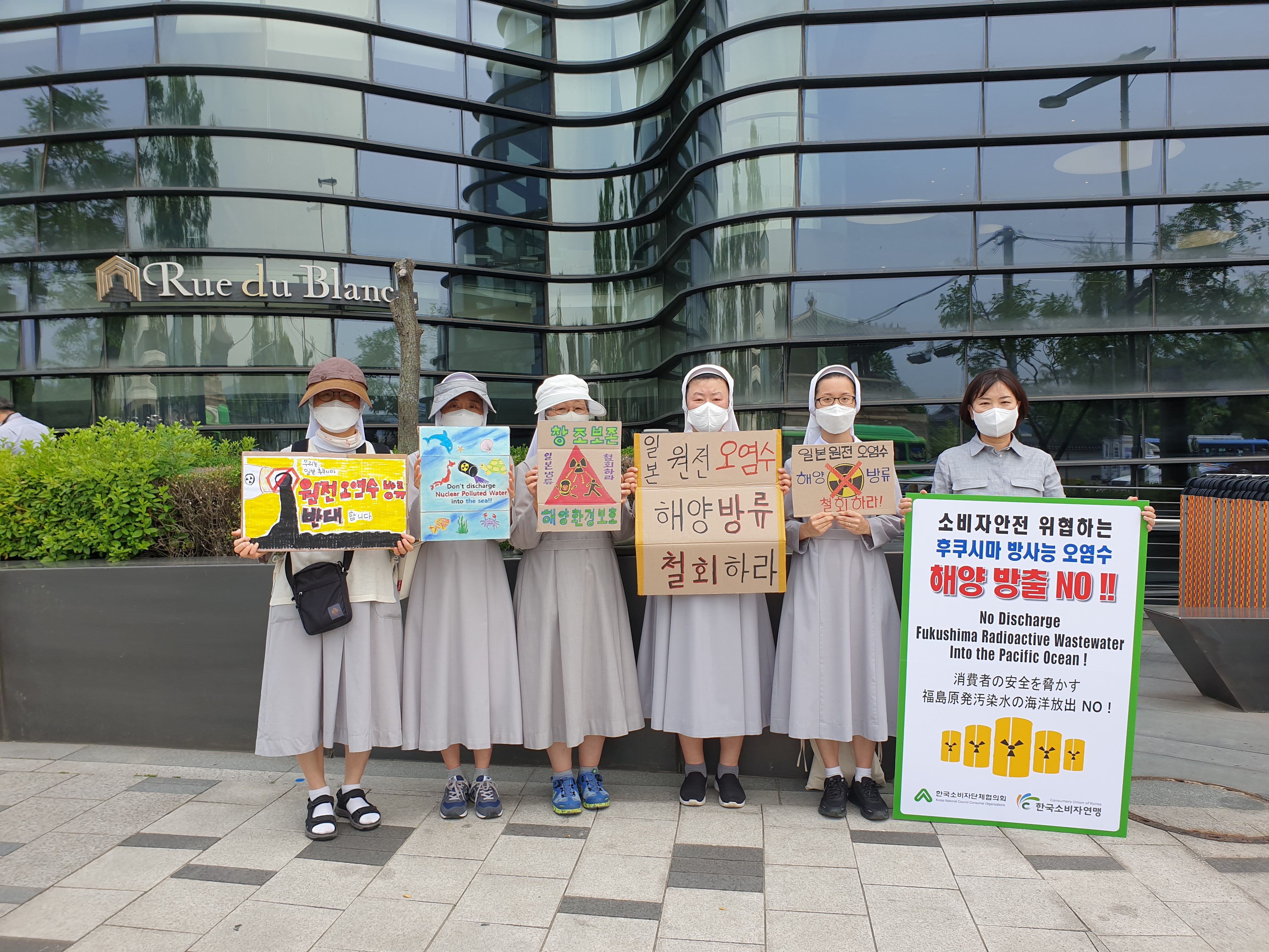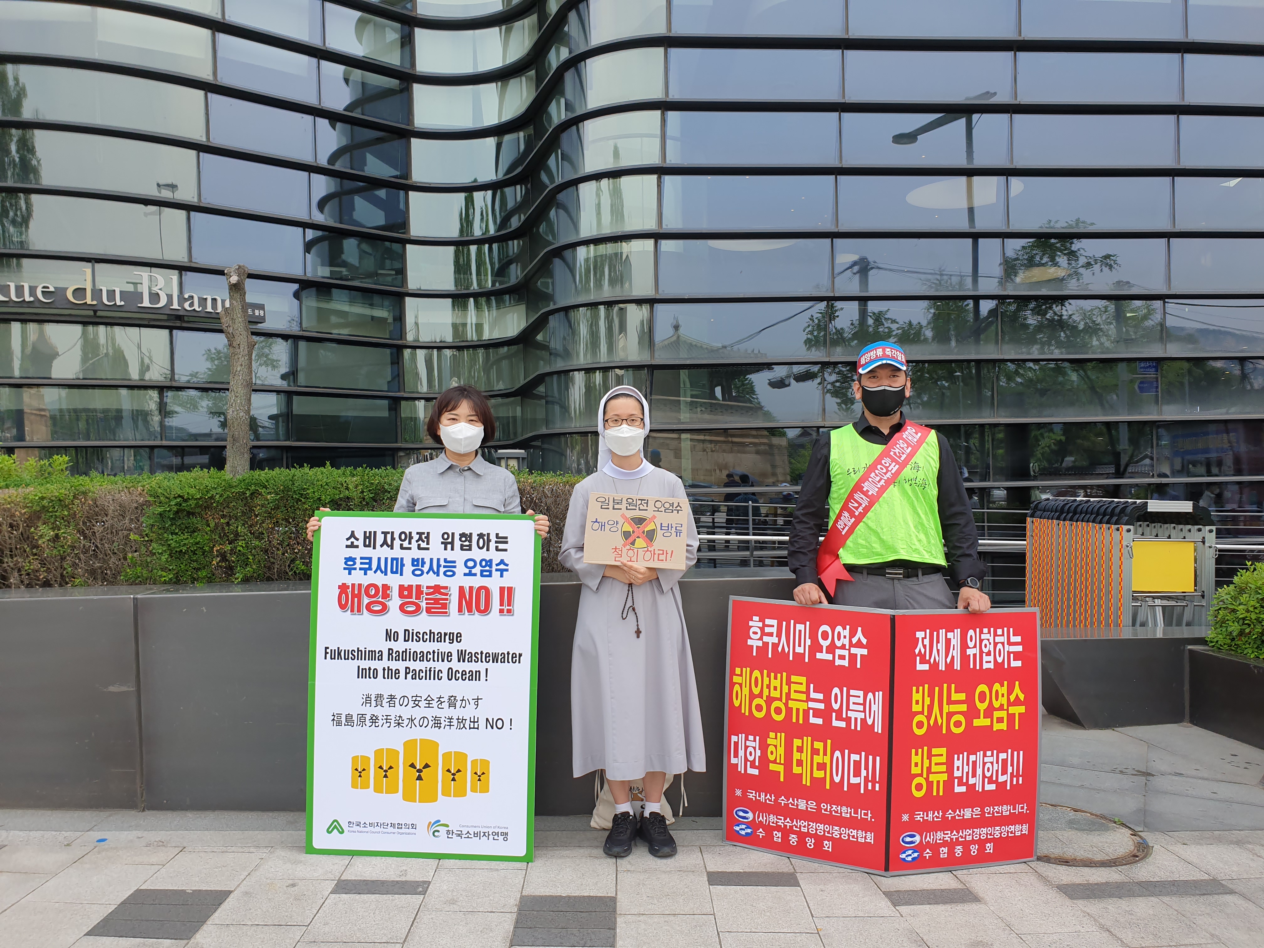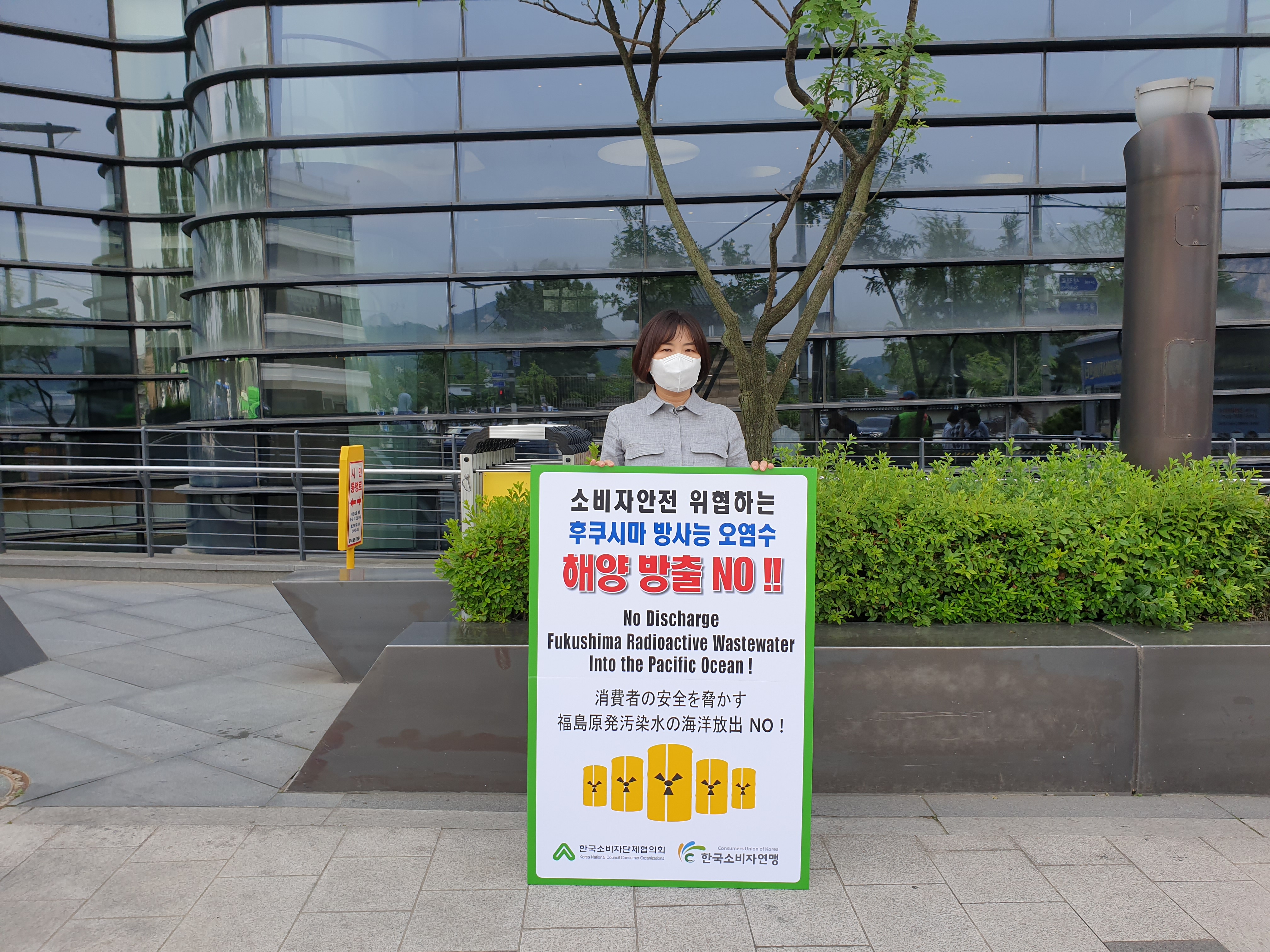 ![]() ![]() ![]() 한국소비자연맹은 6월 14일(월) 서울 소재 일본 대사관 앞에서 일본의 후쿠시마 방사능 오염수 해양방출 결정을 반대하는 1인 시위에 나섰다. 앞서 한국소비자단체협의회는 지난 7일(월)부터 일본 대사관 앞에서 1인 시위를 시작했다. 한국소비자연맹을 포함한 한국소비자단체협의회 11개 회원단체들은 앞으로 매주 월요일 일본 대사관 앞에서 릴레이 시위를 이어갈 예정이다. 이번 릴레이 1인 시위의 목적은 일본 정부의 일방적인 일본 후쿠시마 방사능 오염수의 해양 방출 결정으로 인해 해양 생태계와 인류의 먹거리 안전이 위협받고 있기 때문에 이를 막기 위함에 있다. 한국소비자연맹을 비롯한 한국소비자단체협의회는 일본 정부가 후쿠시마 오염수 해양방출 결정이 철회될 때까지 일본대사관 앞에서 무기한 1인 시위를 진행 할 계획이다. 한국소비자연맹은 14일(월) 일본 대사관 앞에서 1인 시위를 진행하는 한편, 수녀님들과 수협중앙회 등과의 연대하여 일본 정부의 후쿠시마 방사능 오염수 해양 방출에 대해 함께 규탄하는 활동을 진행하기도 했다. |